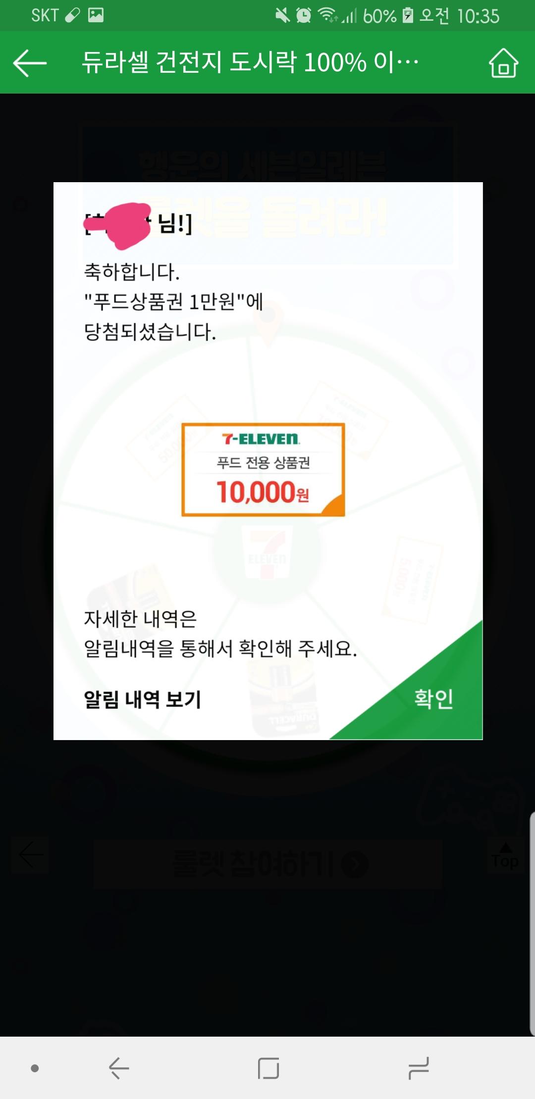 전 방금 돌려서 푸드1만원권 당첨됐습니다