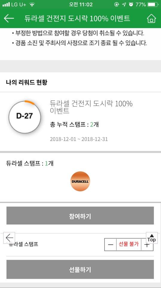 듀라셀 스탬프 적립은 됬는데 룰렛참여가 안 되네요 > 자유게시판
