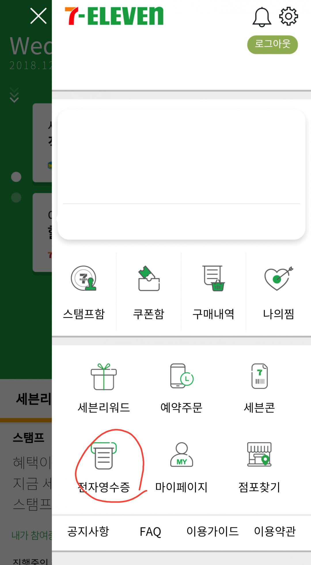 세븐일레븐 앱에 전자영수증 있으니