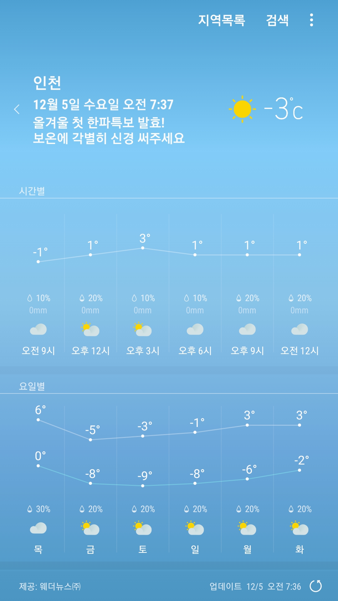 윗지방은 영화네요....아랫지방은 주말쯤 영하권에 진입할것 같아요... |
