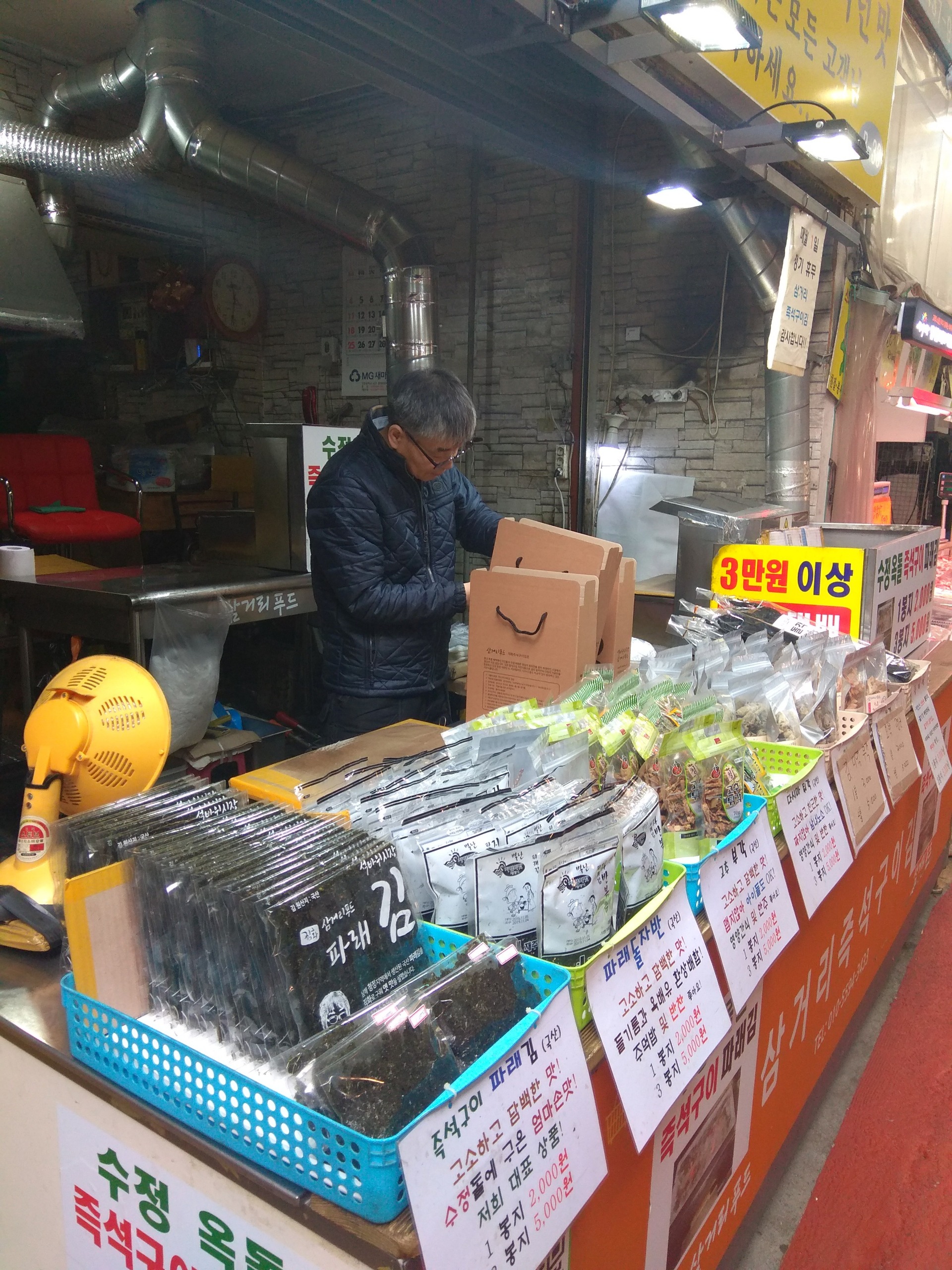 11시 오픈이라 한바퀴 돌면서 업장 준비하는 모습을 눈에 담았네요. 역시나 수산물 파는 매장이 활기차고 음식점은 국이 끓는 모습, 모라모락 김이 나는 떡집은 침이 넘어가게 하더군요.