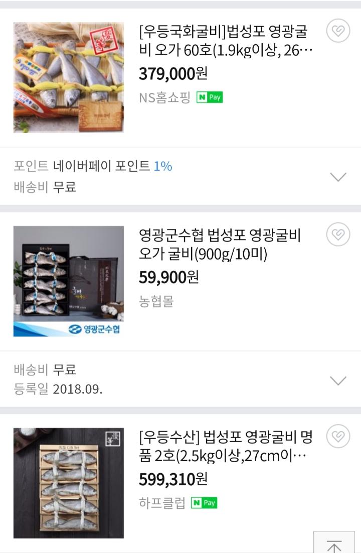 굴비 크기에 따라 가격이 급상승하는 가격구조가 잘 이해는 안되더라구요. 맛도 별 차이 없구만
