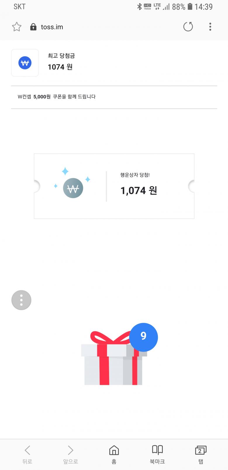 3번 열어 75원 나왔다가 카톡 공유하고 3407원 나와서 받았어요. 고맙습니다. ^^ | ||