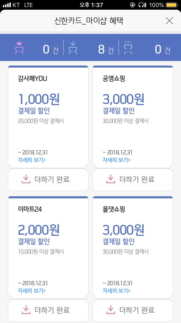 오!!! 신한카드 마이샵이 있네요!! 근데 전 1000원 할인 ㅠㅠ ㅋㅋㅋ 정보 감사해요 |