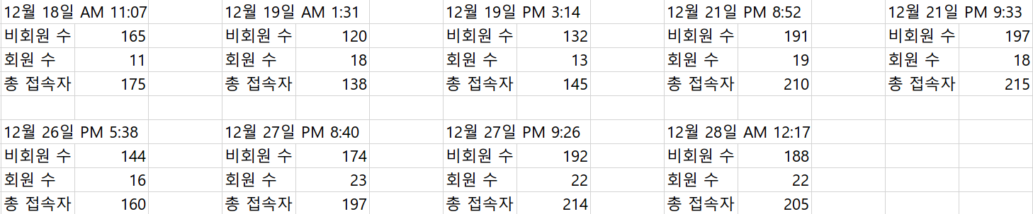 가장 접속자가 많을 땐 200~230 정도를 기록하는 편입니다