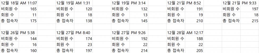 오늘도 12시에 200을 넘고, 이 글 쓰는 지금(12시 50분) 198명이 접속중이네요