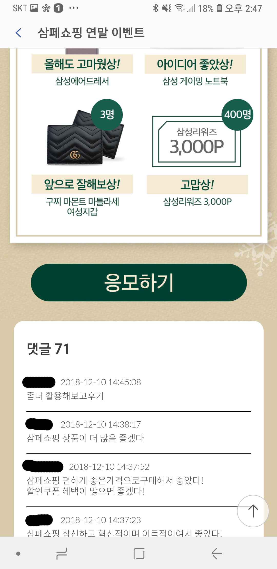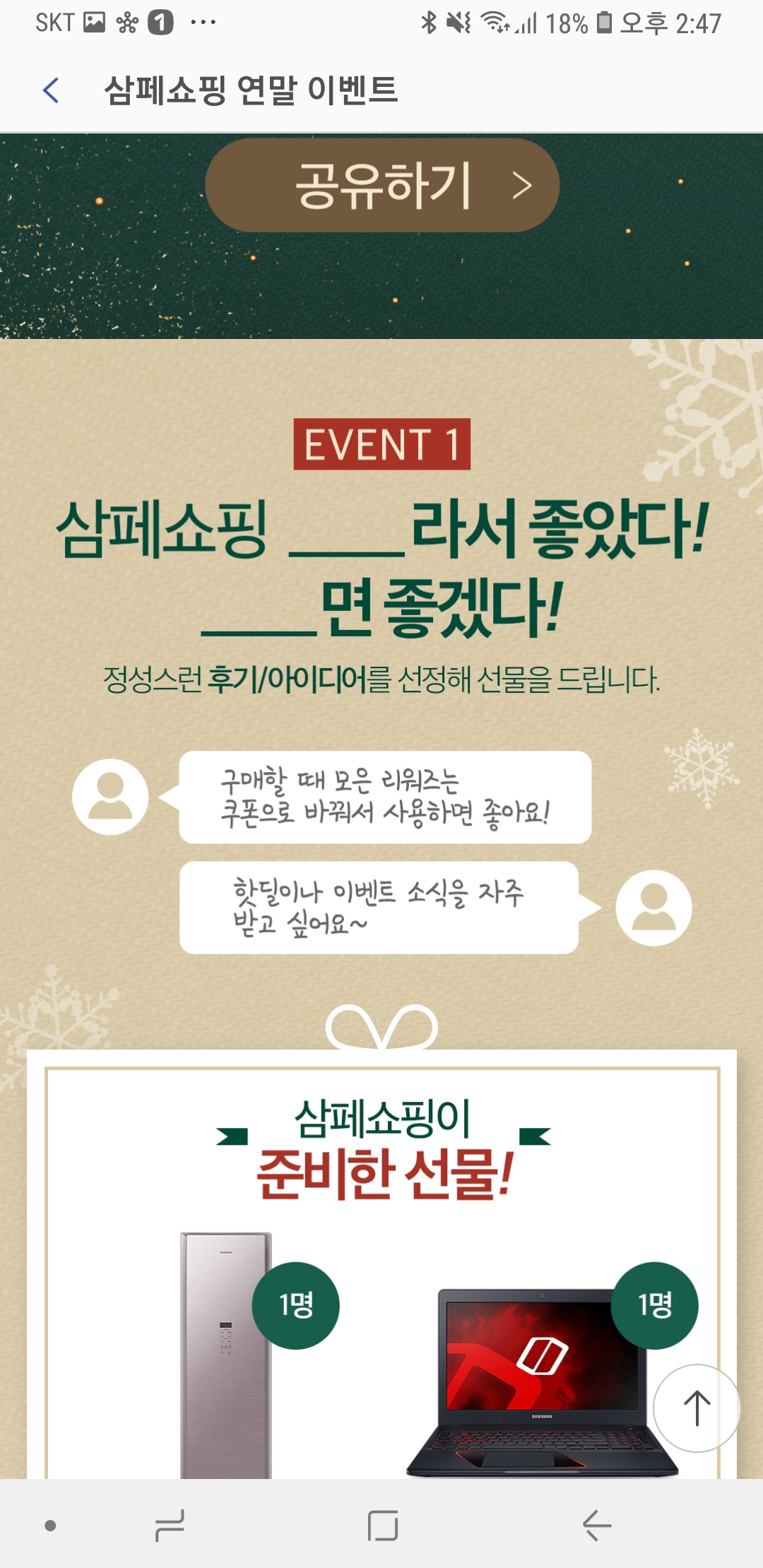 삼성페이쇼핑에서 하는 이벤트라 삼페 앱 열고 이벤트로 들어가면 뜨네요
