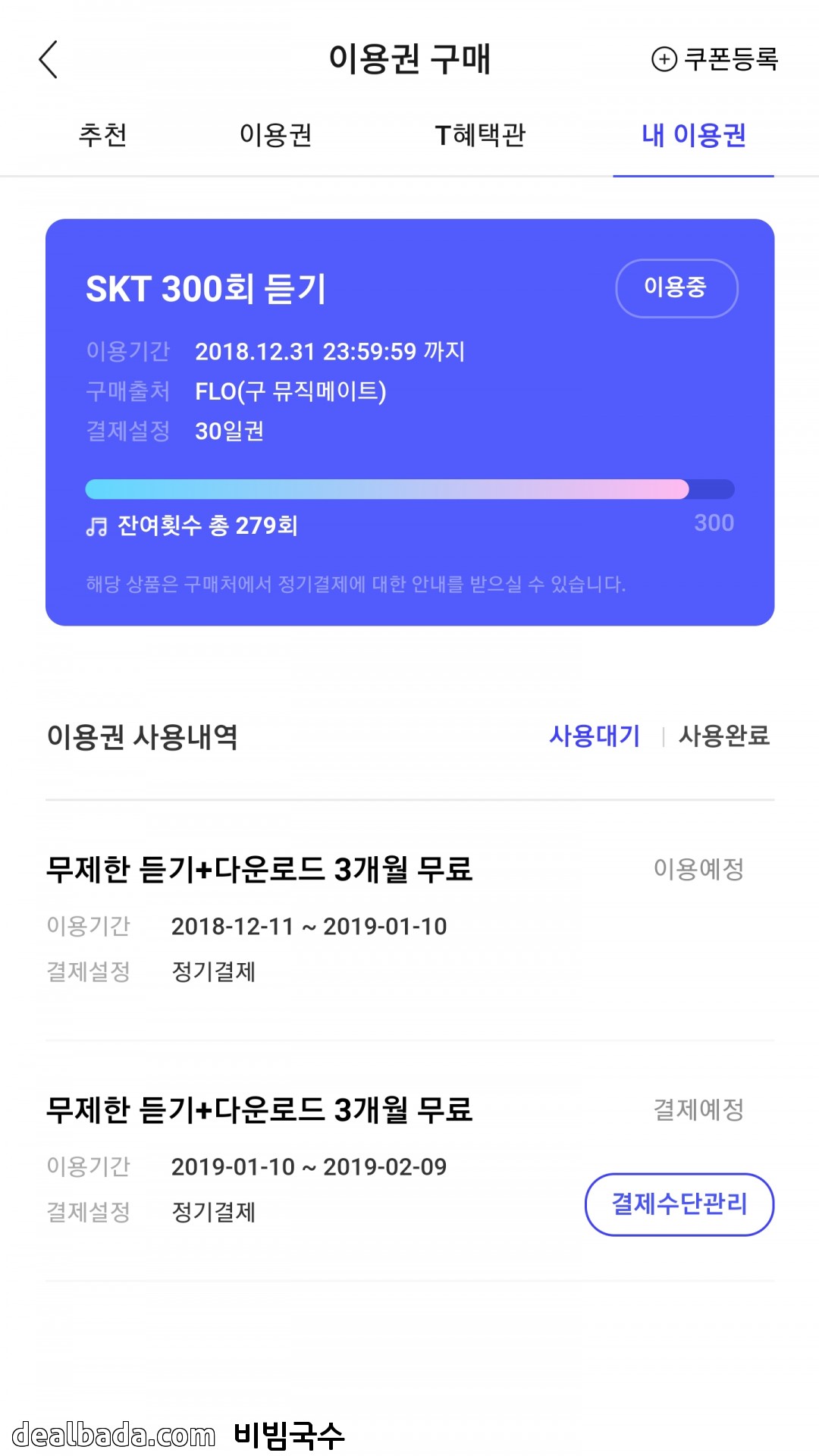 그것보다 벅스도 이용중인데 벅스도 이용권을 써야해서... 어쩔 수없이 2개를 이용해야겠네요ㅋㅋㅋ