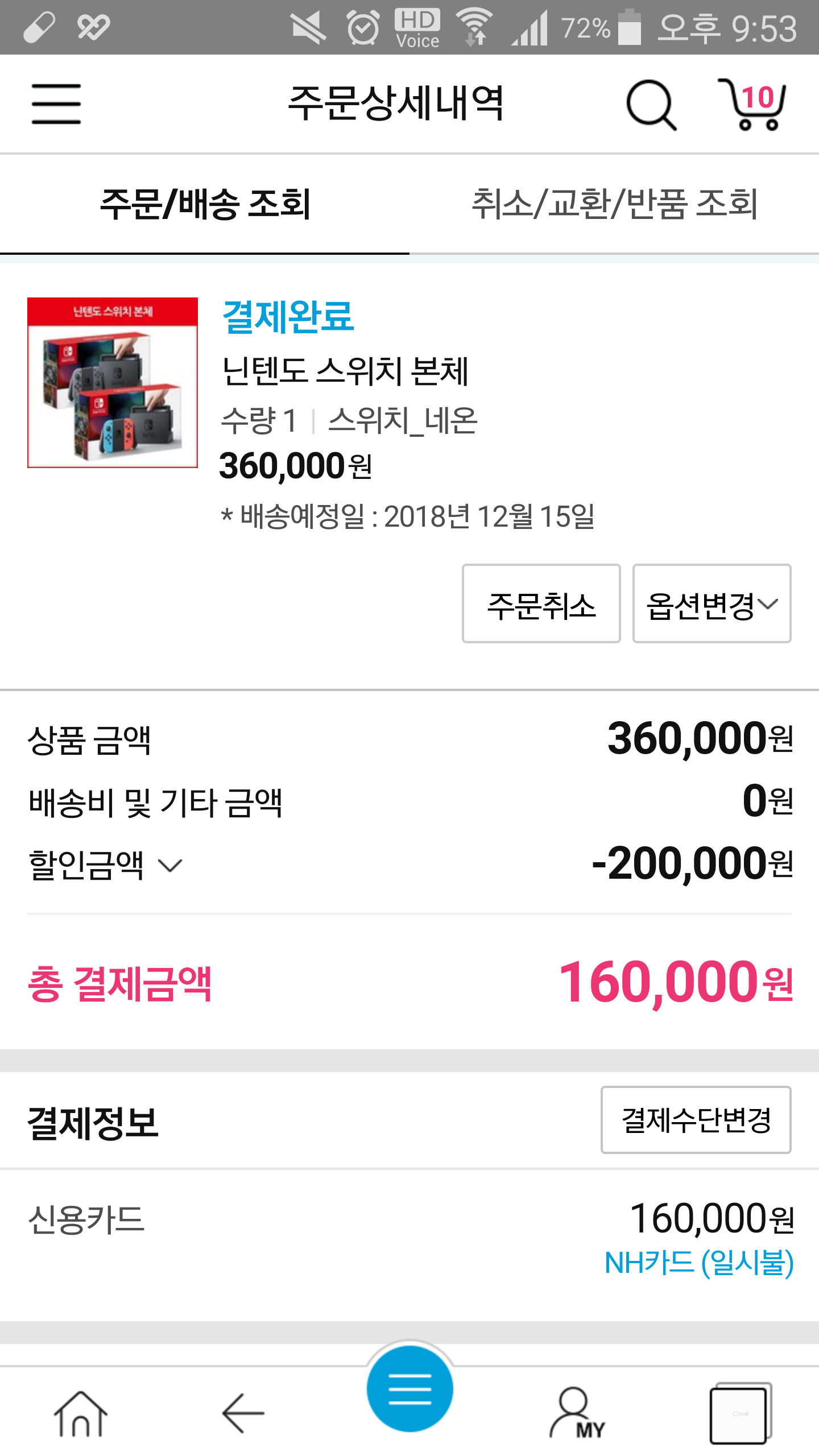 결제수단은 배송준비중으로 넘어가서 변경이 안대네용 ㅎㅎ |
