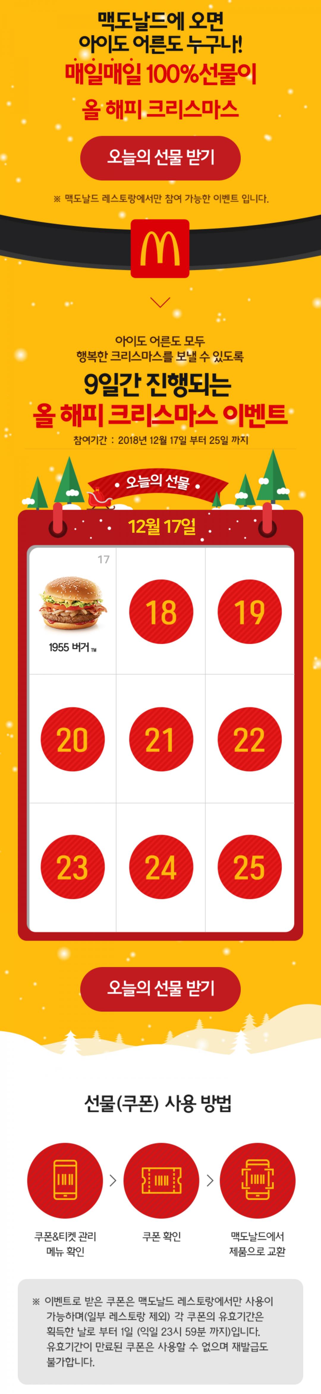 맥도날드 17일~25일 크리스마스 할인쿠폰