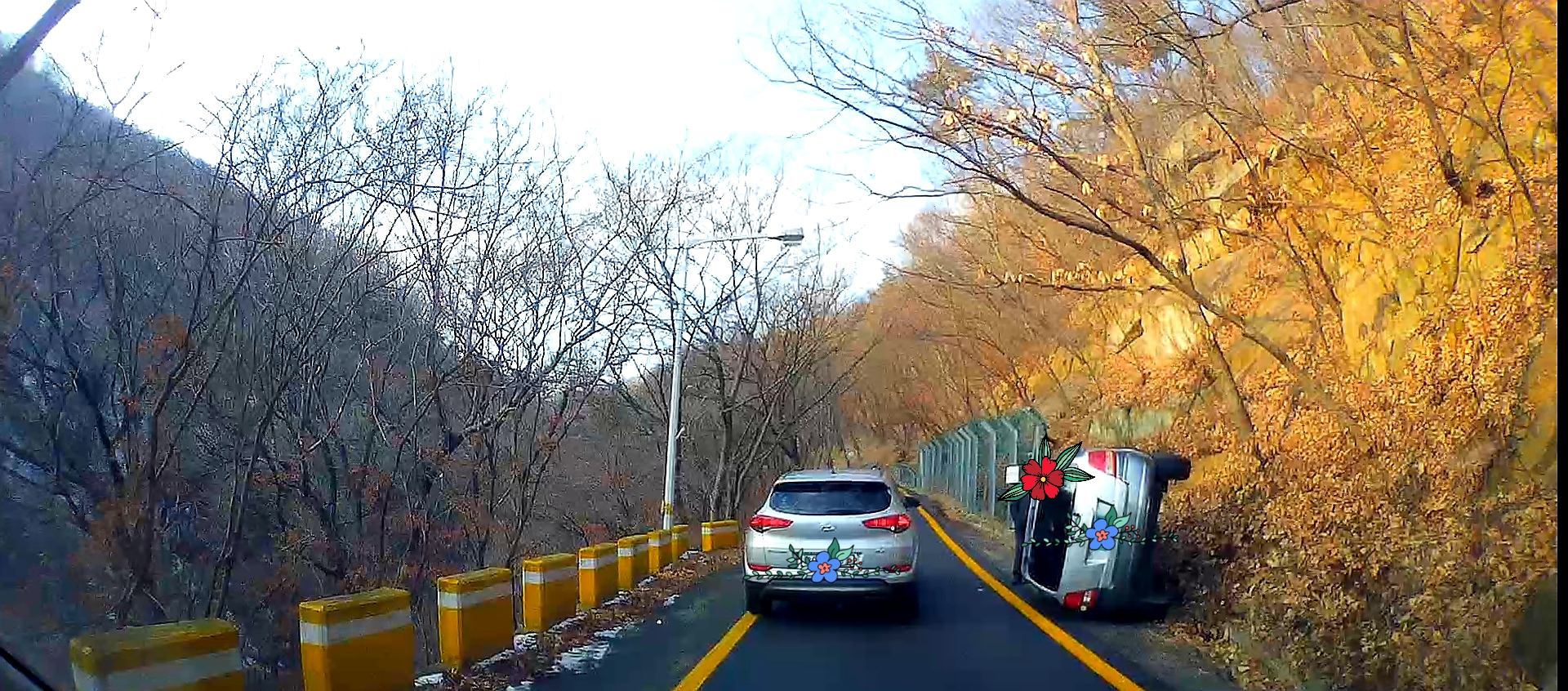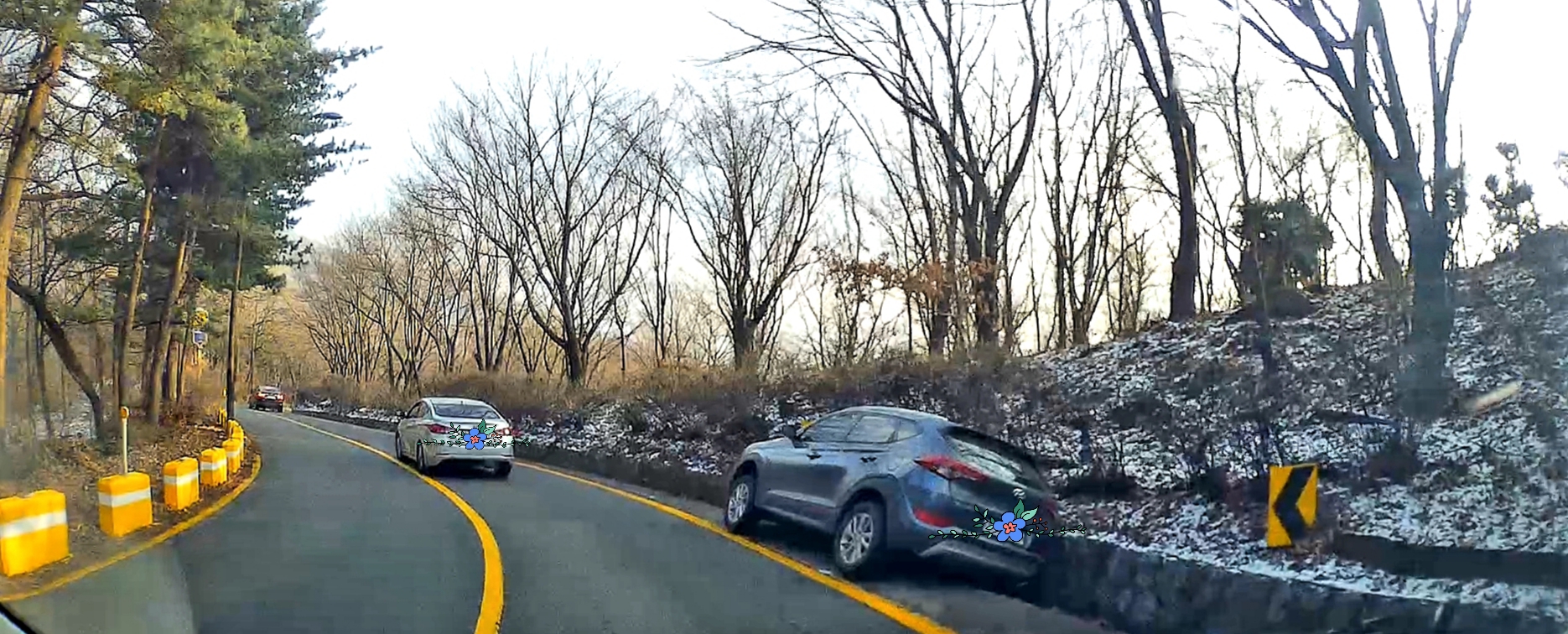 길이 좀 꼬불꼬불하긴 한데 두대나 사고가 나다니.. 안전운전 하세요!