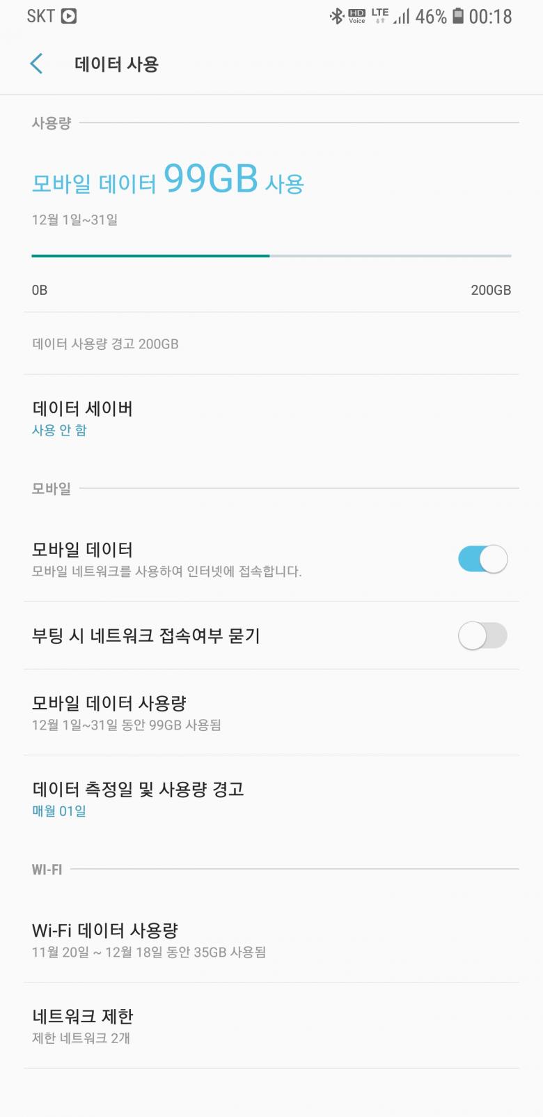 LTE 와이파이 합산 하면 대략 25기가 쓰나봐요 ㅎ | ||