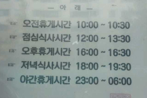 경비원은 폰 알람설정해놓고 일하다가 정확히 저 시간되면 휴식시간입니다