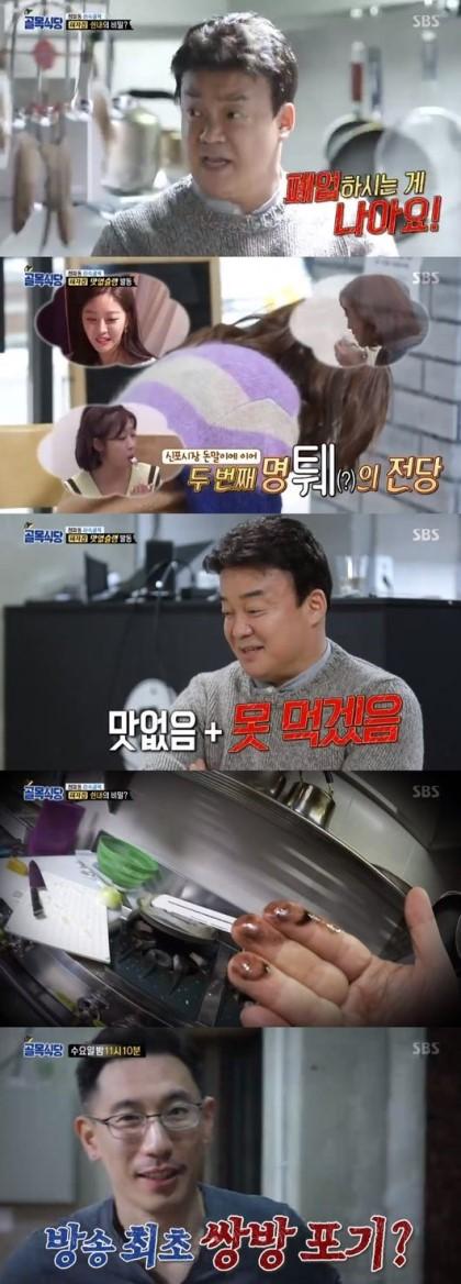 심지어 겨드랑이 사이에 도마 껴 두고 거기 위에 재료 올려두고 손질 |