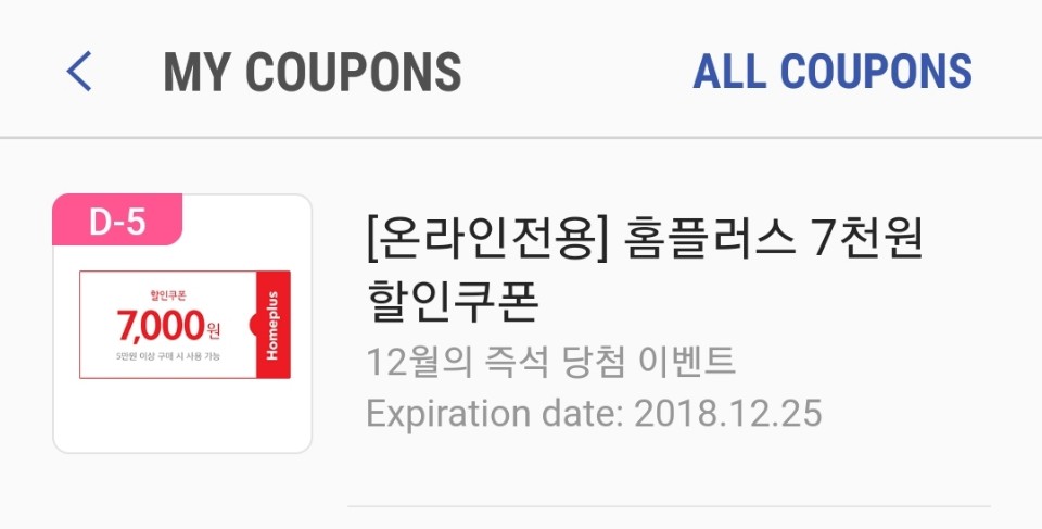 만료기간 12월 25일, 5만원 이상 사용시 적용가능, 온라인몰에서만 사용가능