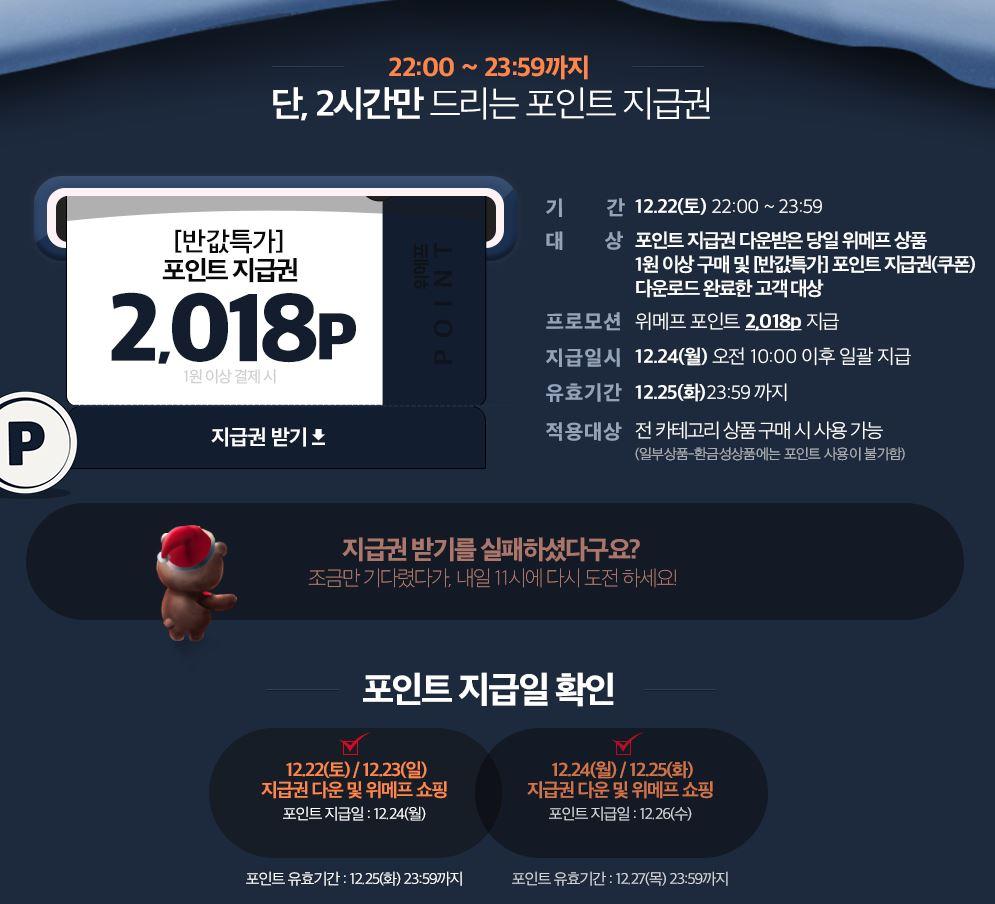 위메프 2,018포인트 다운받으세요 (22:00~23:59)
