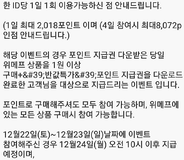 그러니까 이벤트 기간 4일 x 2018 = ..... 8072 p 지급 됩니다..