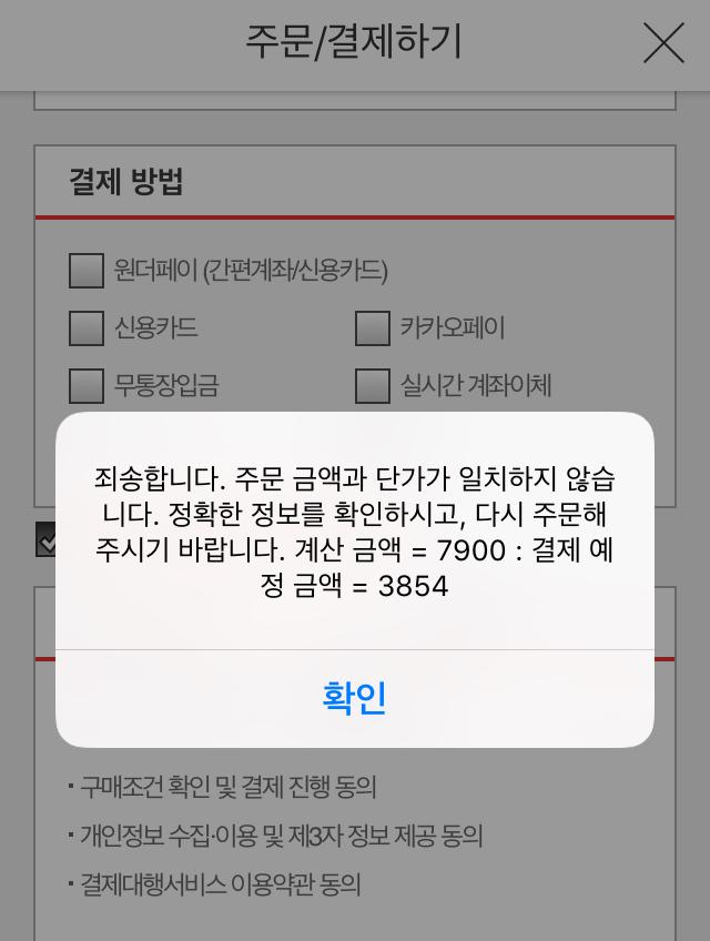 전에는 잘구매했는데 다른것도 시도하니 비슷한 메세지 뜨네요