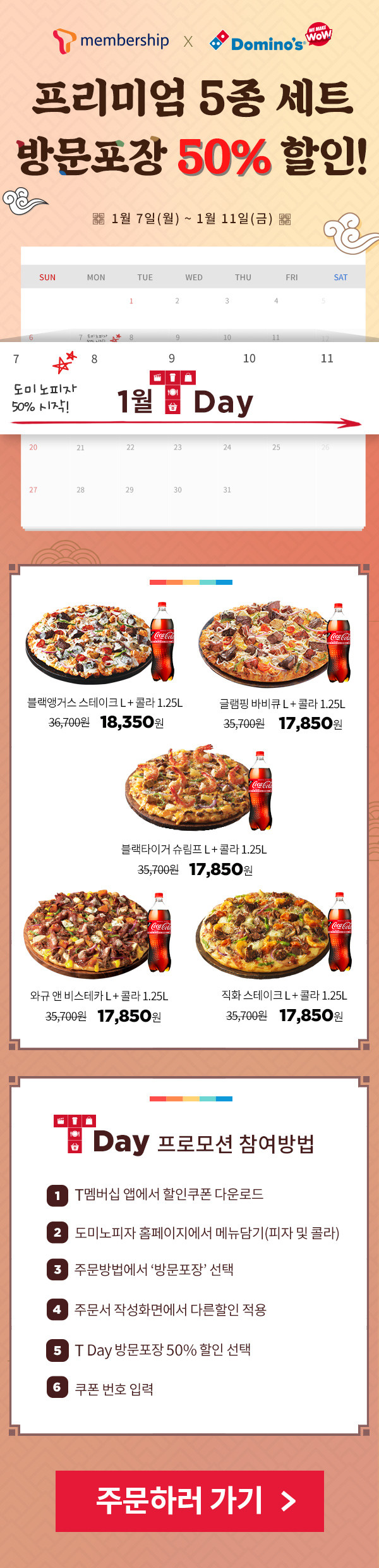 T멤버쉽 있으면 도미노피자 50프로 할인받으세요