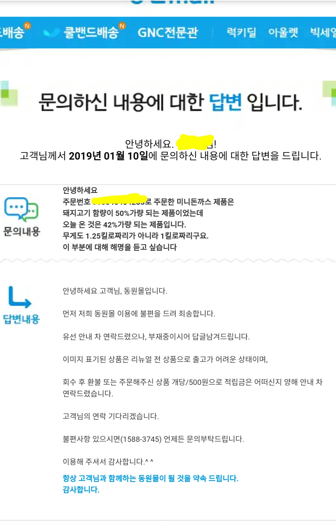 다른 물건이 온 것에 대한 문의였지 항의하려고 한 건 아니었어요. 어쨌건 주문한 것과 다르니 확인은 해야 하니까요 |