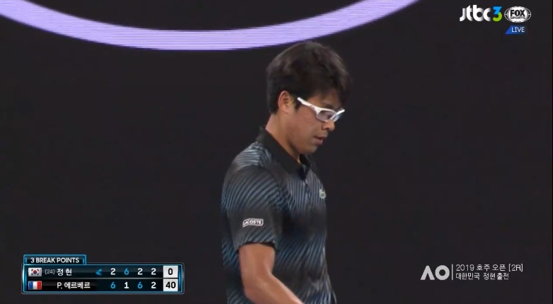 프랑스의 에르베르에게 세트 2개를 내줫고 현재 4세트 에서도 3-4로 지고 있습니다.