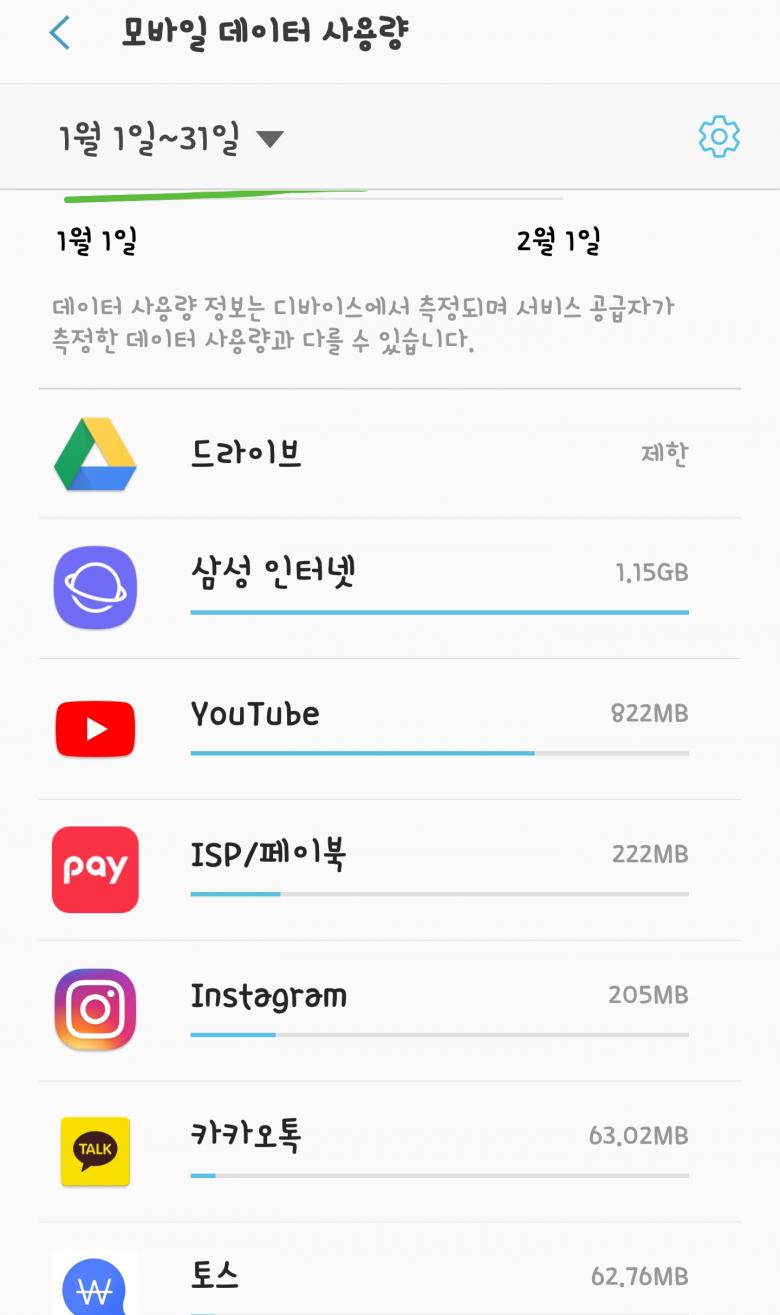페이북 사용한 날 데이터이용량이 급등했네요