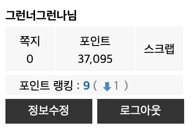제 포인트의 10배가 넘으셔요 + ㅁ+ |