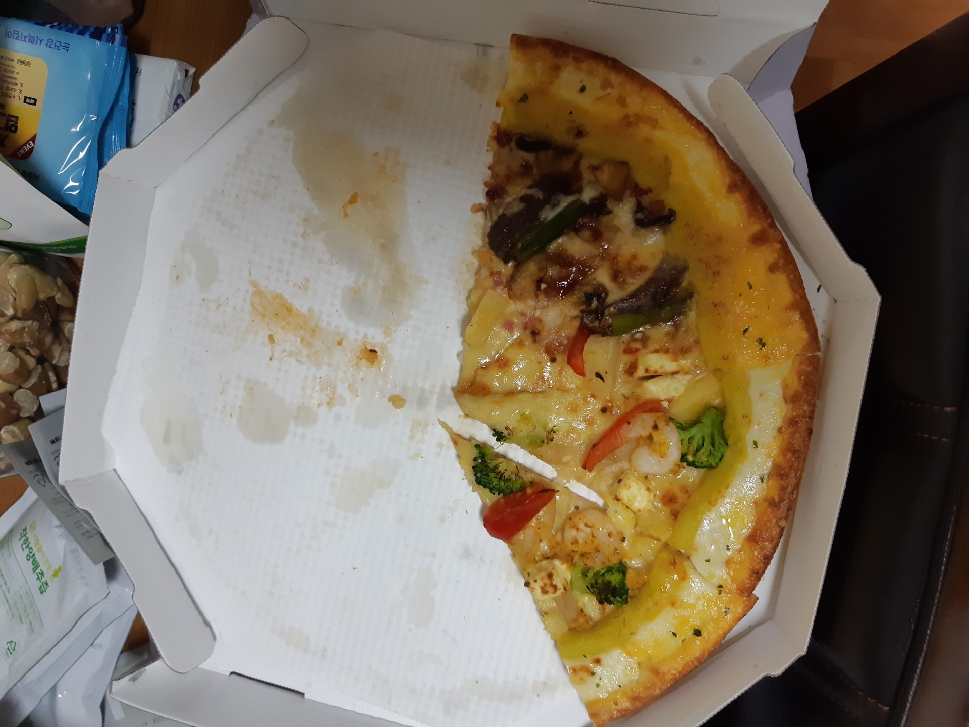 피자헛이 칵테일 새우 2개에서 1개로 줄였나보네요 피자헛은 원래 크기도 작고 하프앤하프가 아니면 9900원 동네피자라고 해도 믿겠어요 |
