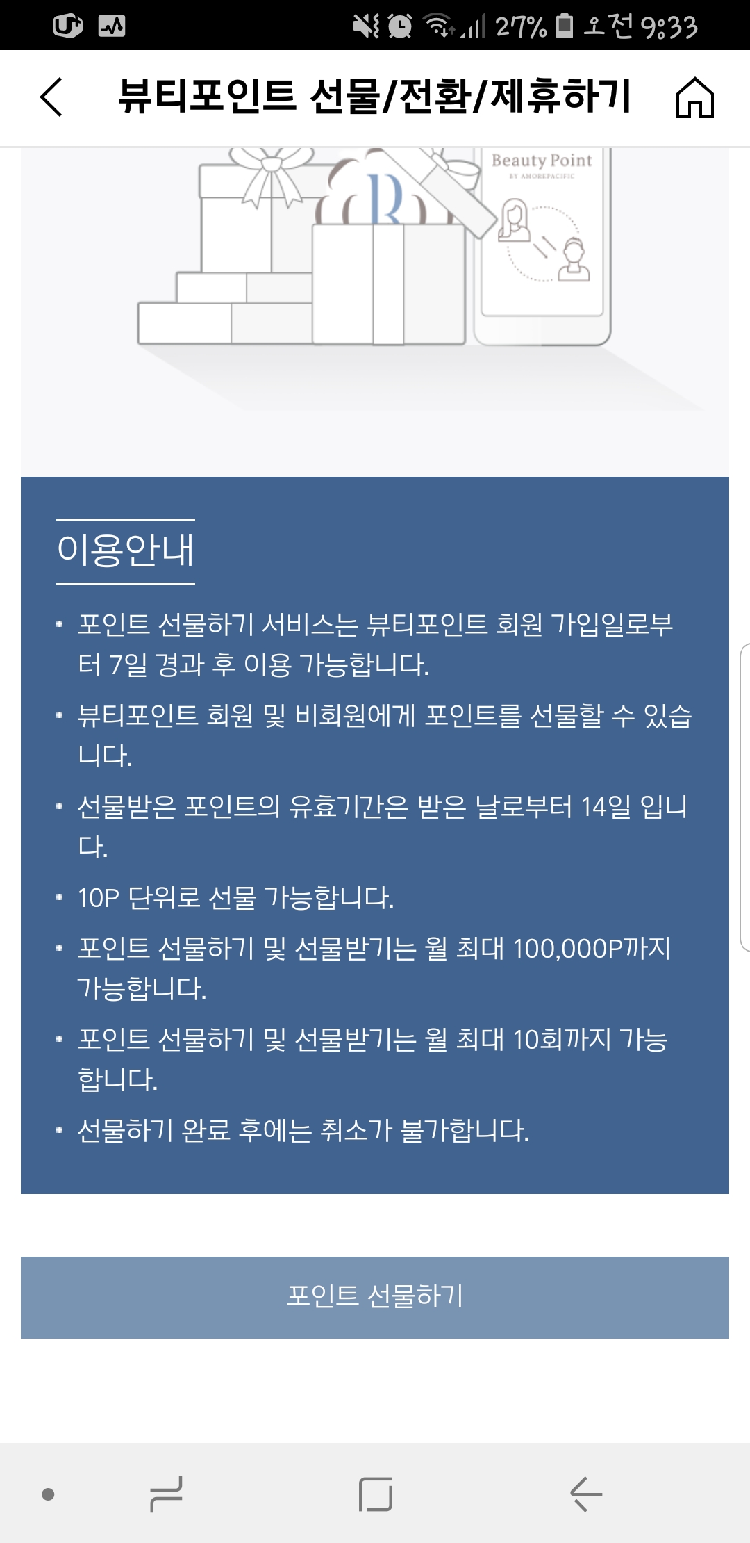 뷰티포인트 선물하기 개악됐네요 > 자유게시판