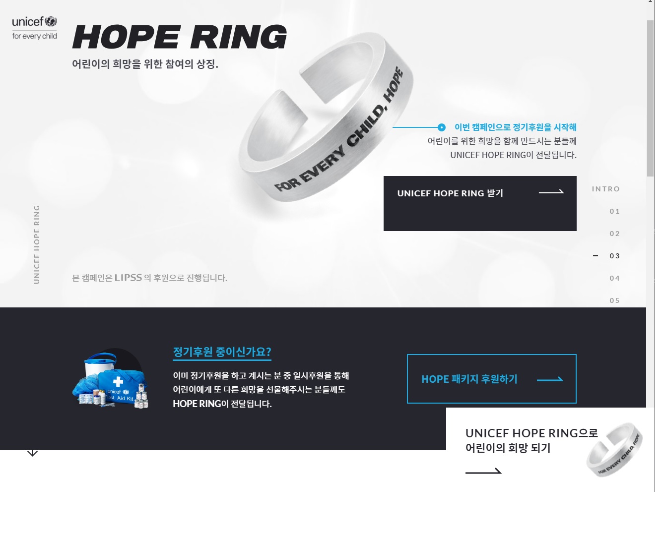 후원을 하면 HOPE RING을 준다네요.