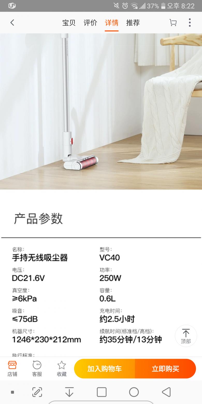 디어마 VC40은 샤오미 공식스토어에서 판매하지 않고 있구요. 타오바오에서는 6000Pa이상이라고 스펙이 되어있는데 판매자들이 15000pa라고 하고 팔더라구요.  애매한 정보라 저는 추천드리지 않아요.