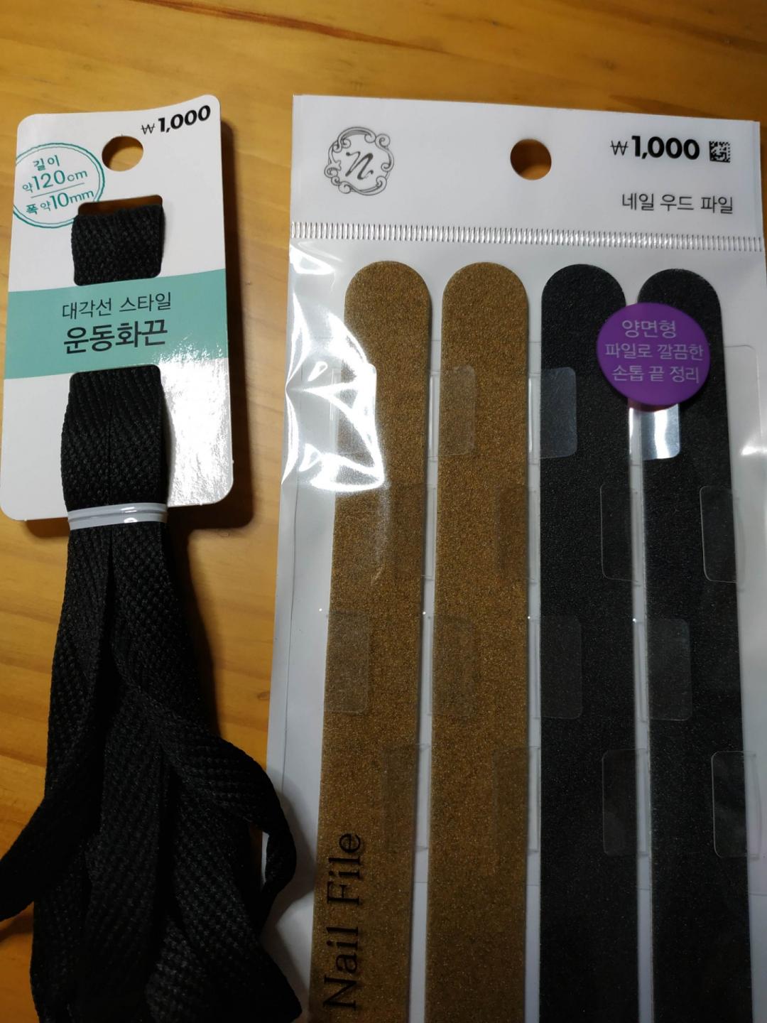 손톱 정리하는 우드 파일과 운동화 끈을 각각 500원에 구입했고