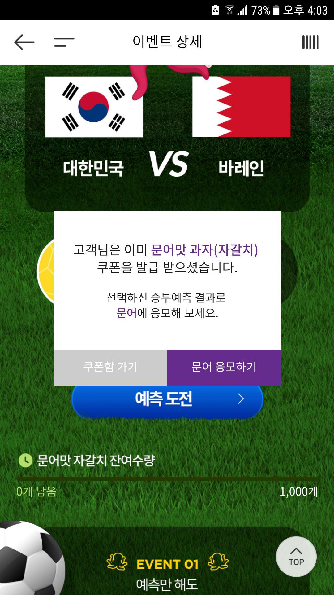 전 처음도전하는 거고 이미 자갈치 받았다고 문구도 나왔었는데 쿠폰함 보니 없어요. |