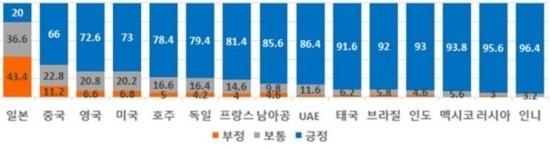 1. 외국인 80%, 한국 ‘긍정적 이미지’ → 긍정 비율 동남아(인도네시아 96.4% 등), 러시아(95.6%) 높고 日(20%) 최저. 中(66%), 美.유럽 70~80%대... 문체부, 16개국 8000명 조사.(헤럴드경제)▼