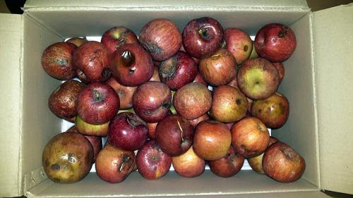 멀쩡한 사과는 한개도 없고, 찍힘은 기본에 쭈글쭈글 마른 사과와 얼어 있는 사과.