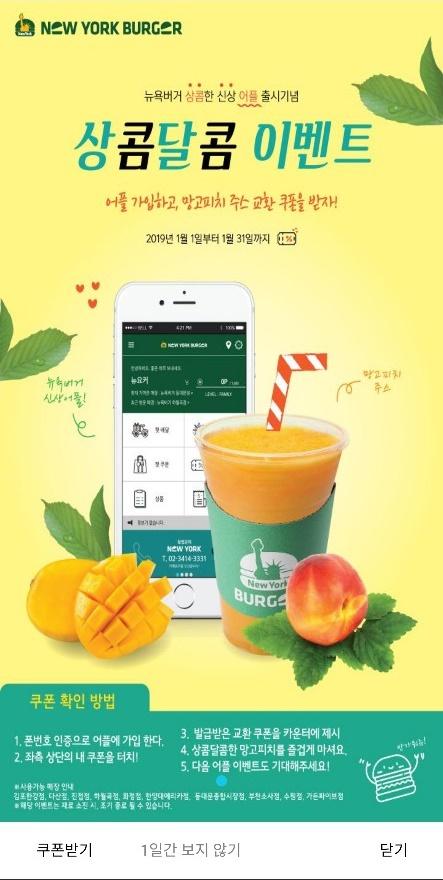 뉴욕버거에서 망고피치 증정 이벤트를 하고있습니다. 어제 이마트 매장 내 뉴욕버거에 이벤트 포스터를보고