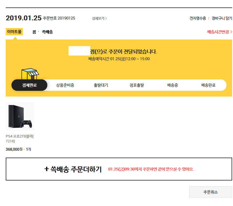 마트는 배송하기 직전에 재고확인하기에 배송안될 확률이 높아요 |