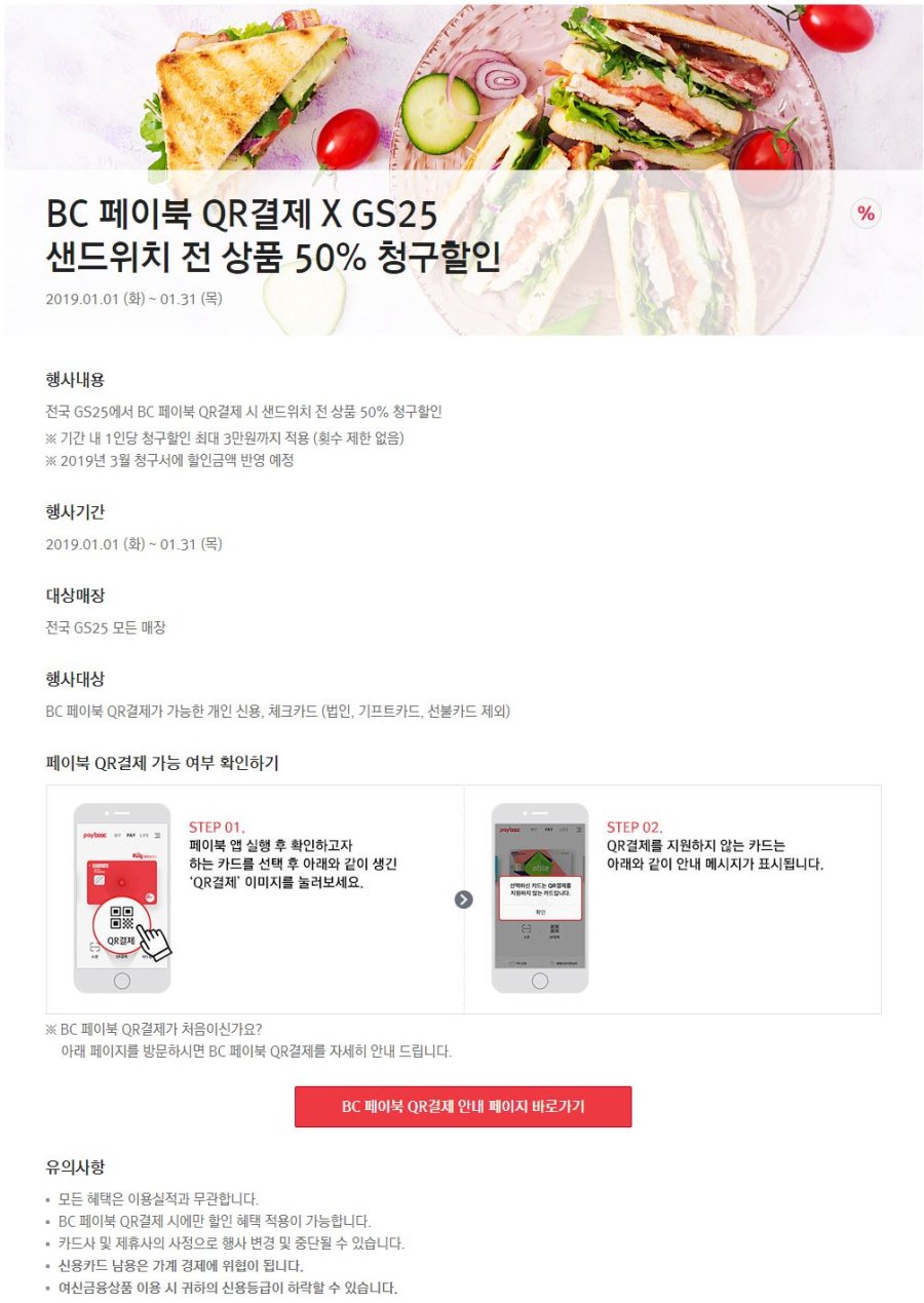 샌드위치는 50% 페이백이랑 500원 페이백 중복적용됩니다.
