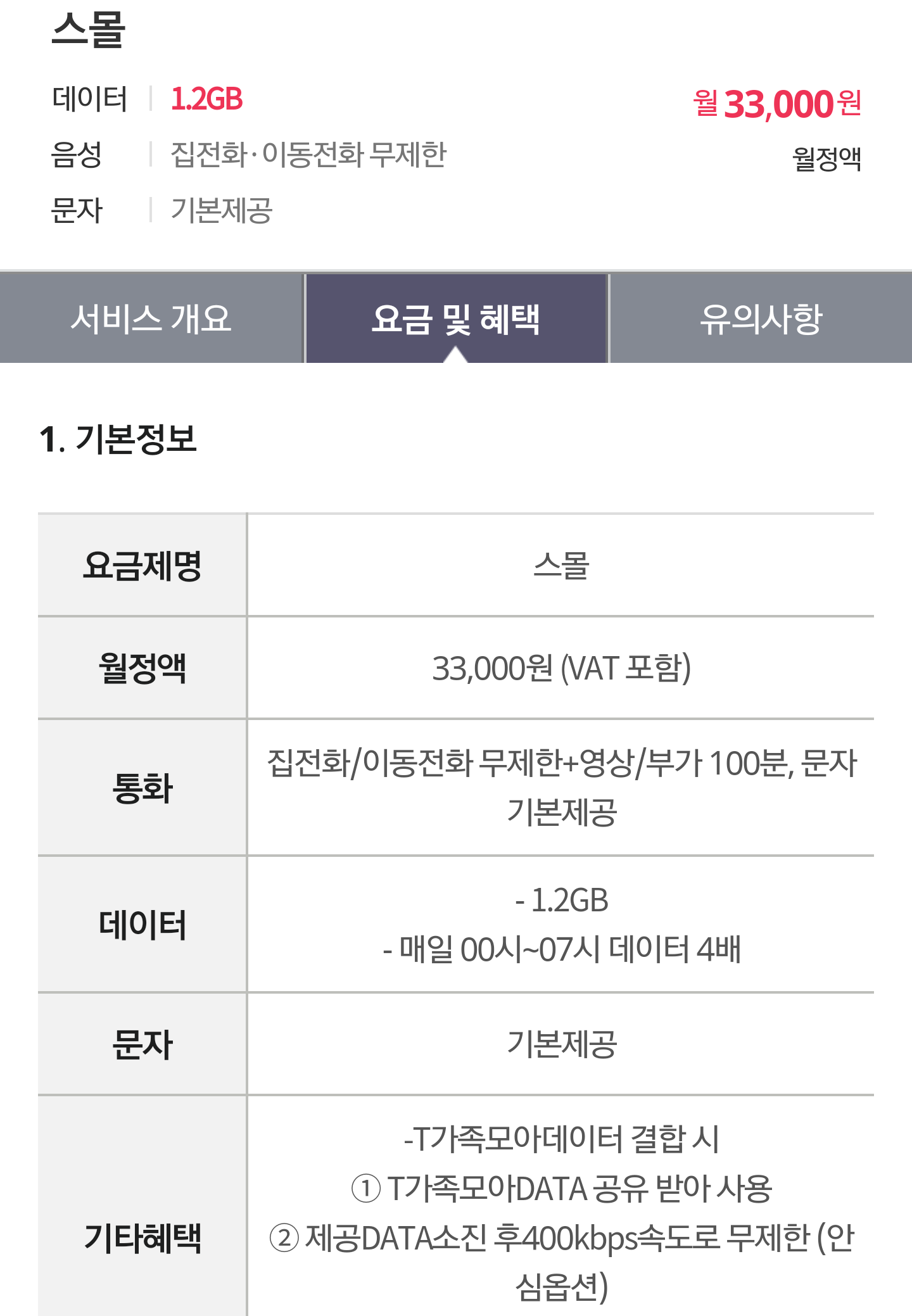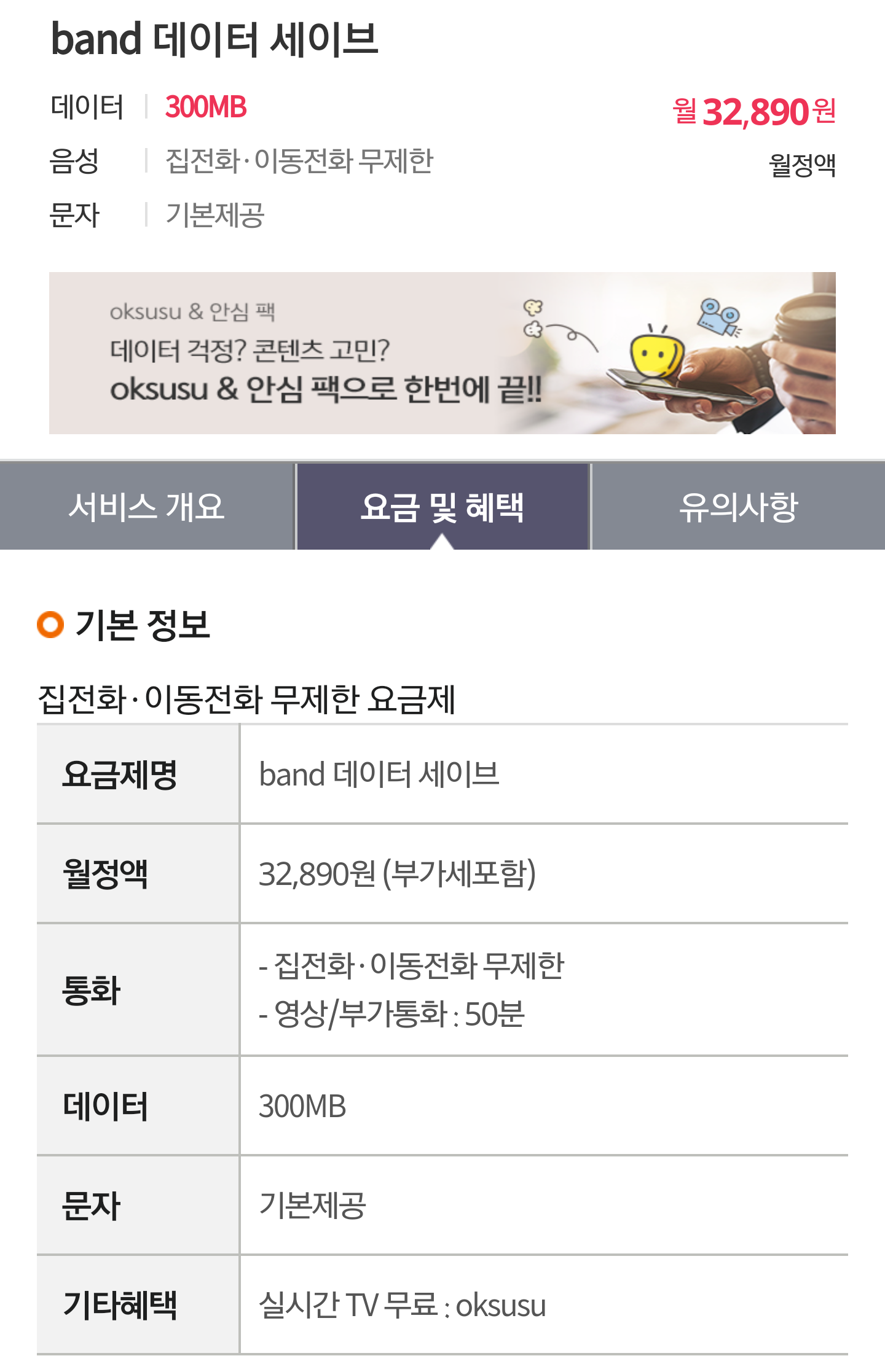 몇년전부터 밴드세이브 요금제를 꾸준히 사용중이었는데 스몰요금제가 있다는걸 방금 알았네요.