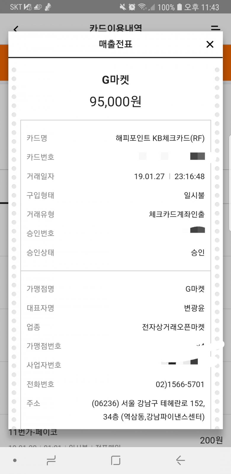 걱정이 아닌 유의미한 답변을 드리자면, 위의 스샷에서는 제휴몰에 대한 여부가 안나옵니다. 다시 말하면 G마켓에서 확인되는게 아닙니다. 확인하려면 KB국민카드 앱이 있습니다. 설치하셔서 로그인을 해서 조금만 아래를 확인하면 최근 이용내역에 KB제휴몰_G마켓스마일 이라고 나올겁니다. 거기에 KB제휴몰 안적혀있으면 안된겁니다. 아니면 카드앱 말고 은행앱이든 PC에서 로그인 해도 빠져나간 금액에 받는쪽 이름에 보입니다.
