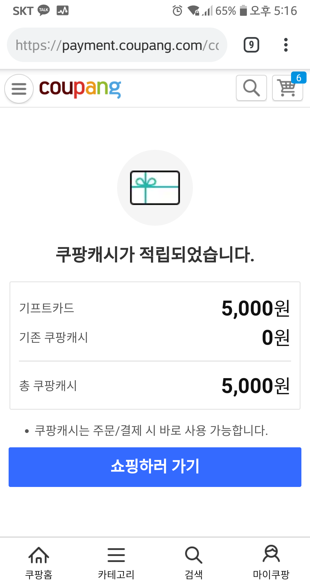 아까 뜬금없는 문자가 오더니 쿠팡캐시가..