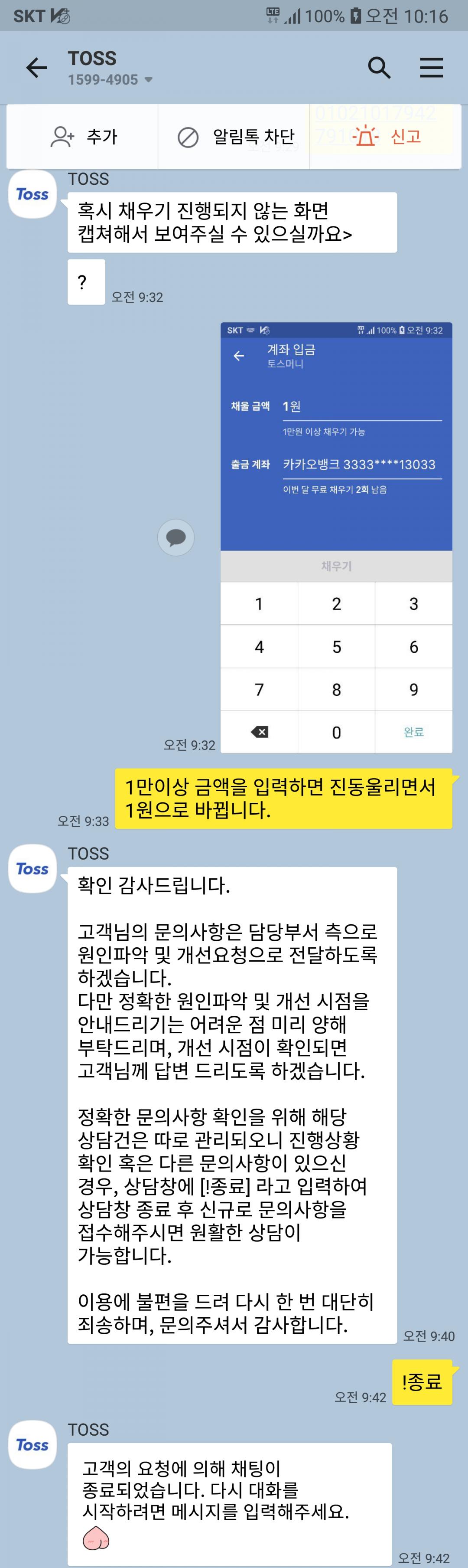 카톡문의하니 형식적이며 기약없는 복붙답변