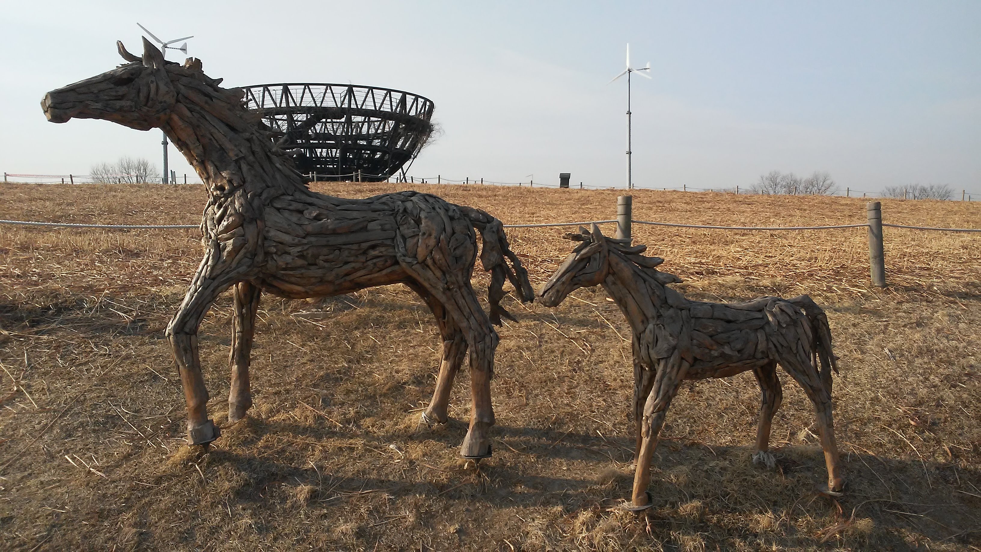 억새 베어내니 탁 트인 느낌입니다. 나무로 만든 말도 있었네요. 처음 본듯.