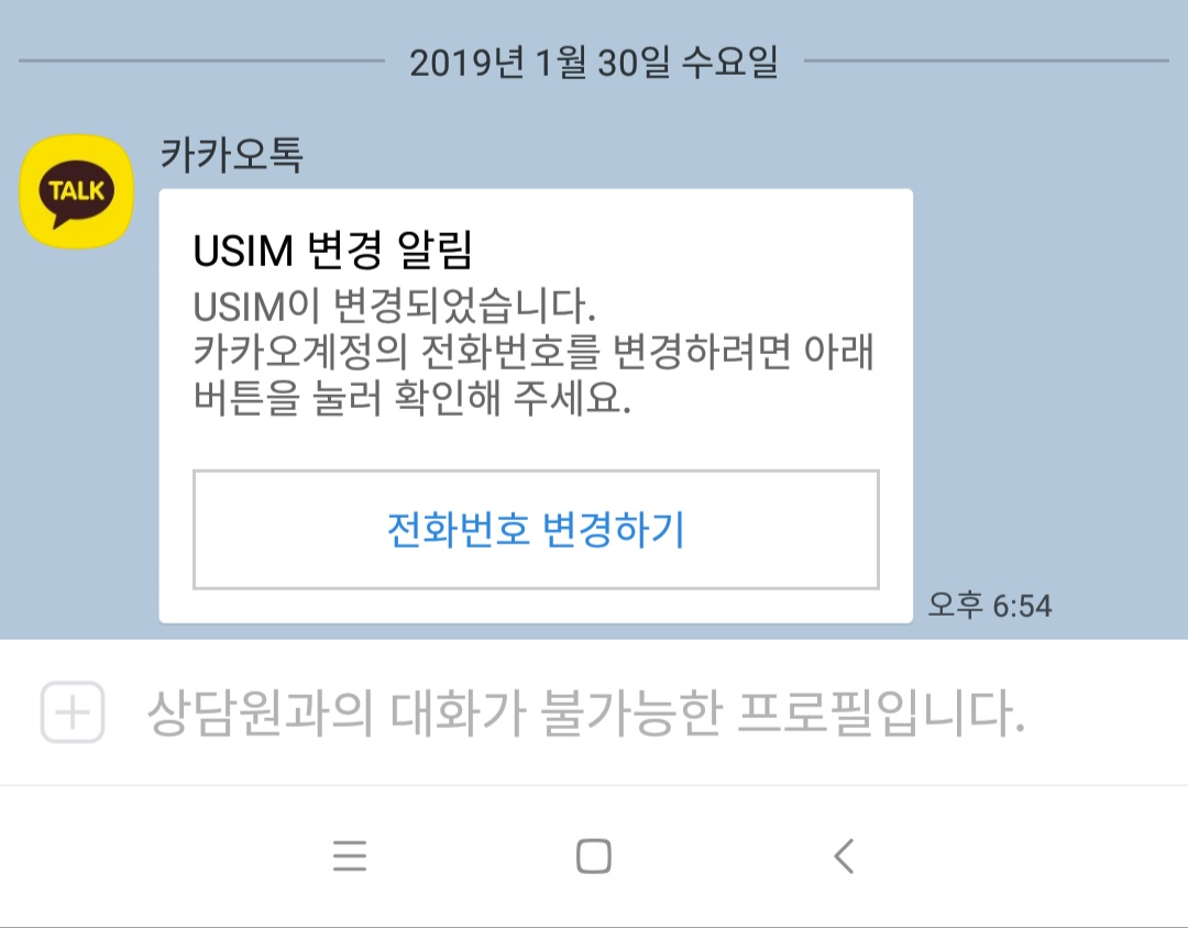 카톡 유심 변경 톡이 왔어요