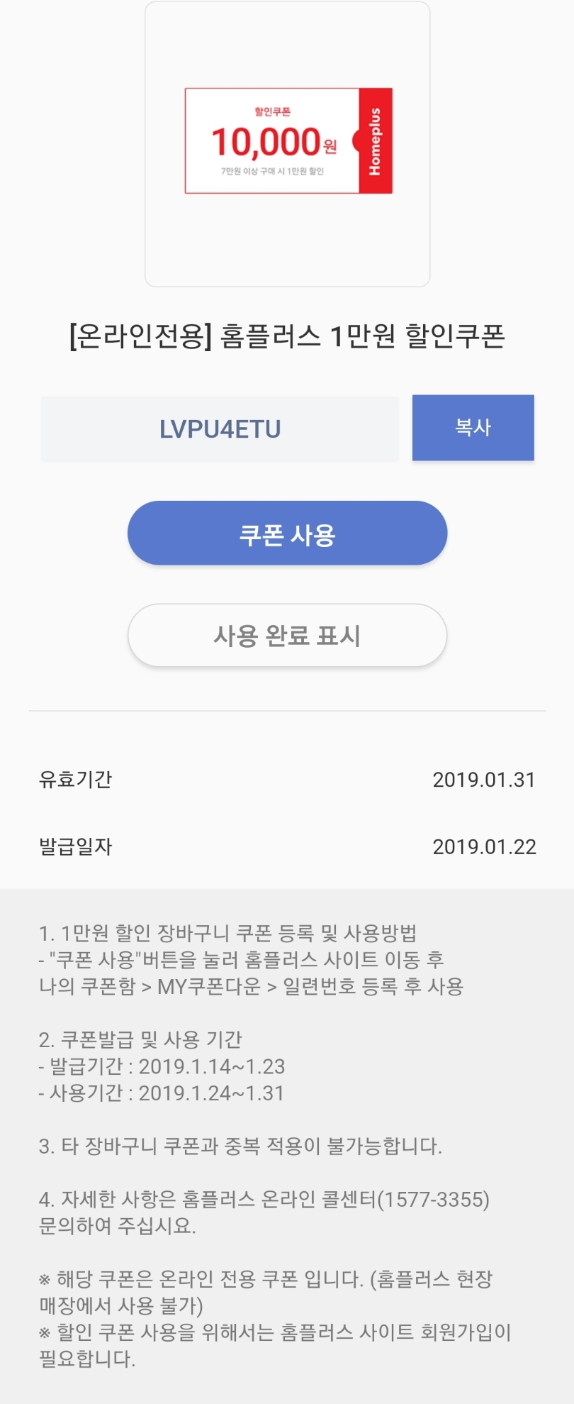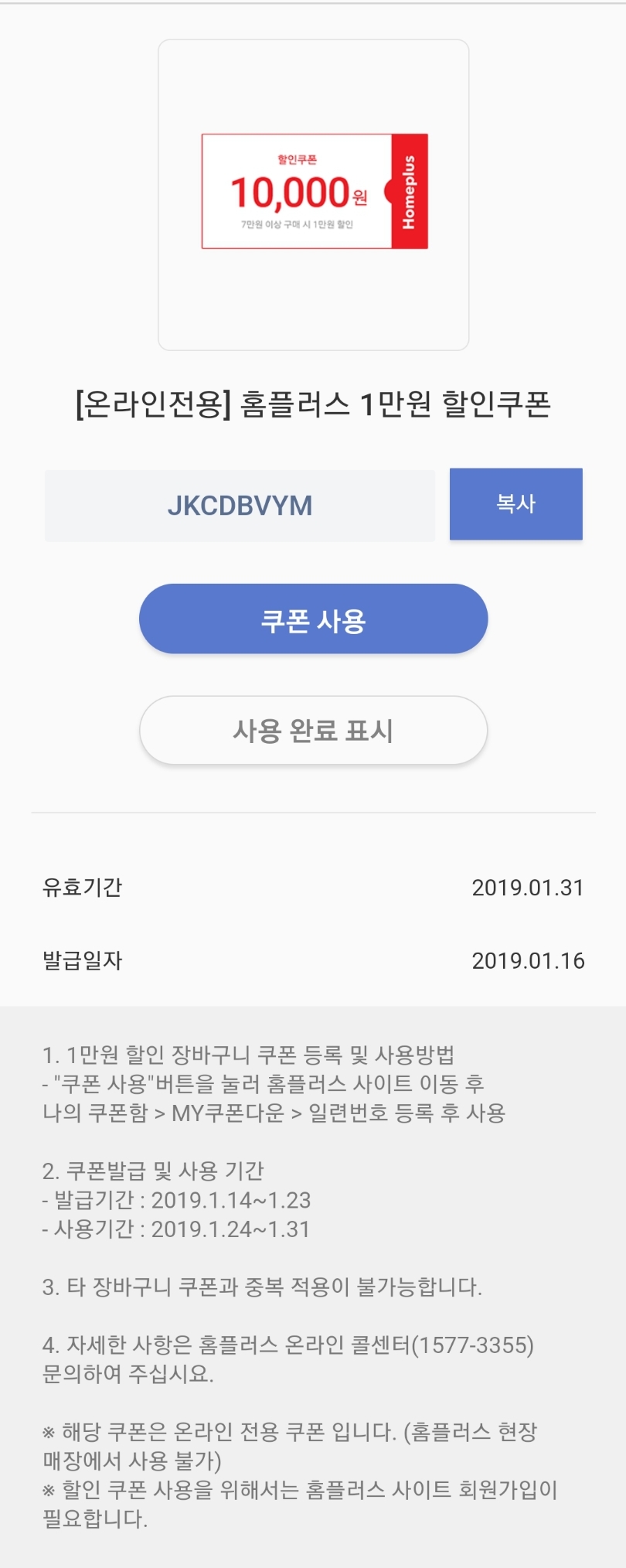 분들이 다시 확인하지 않아도 되니 좋겠네요. 홈플러스 두 장은 내일까지네요. 감사합니다.