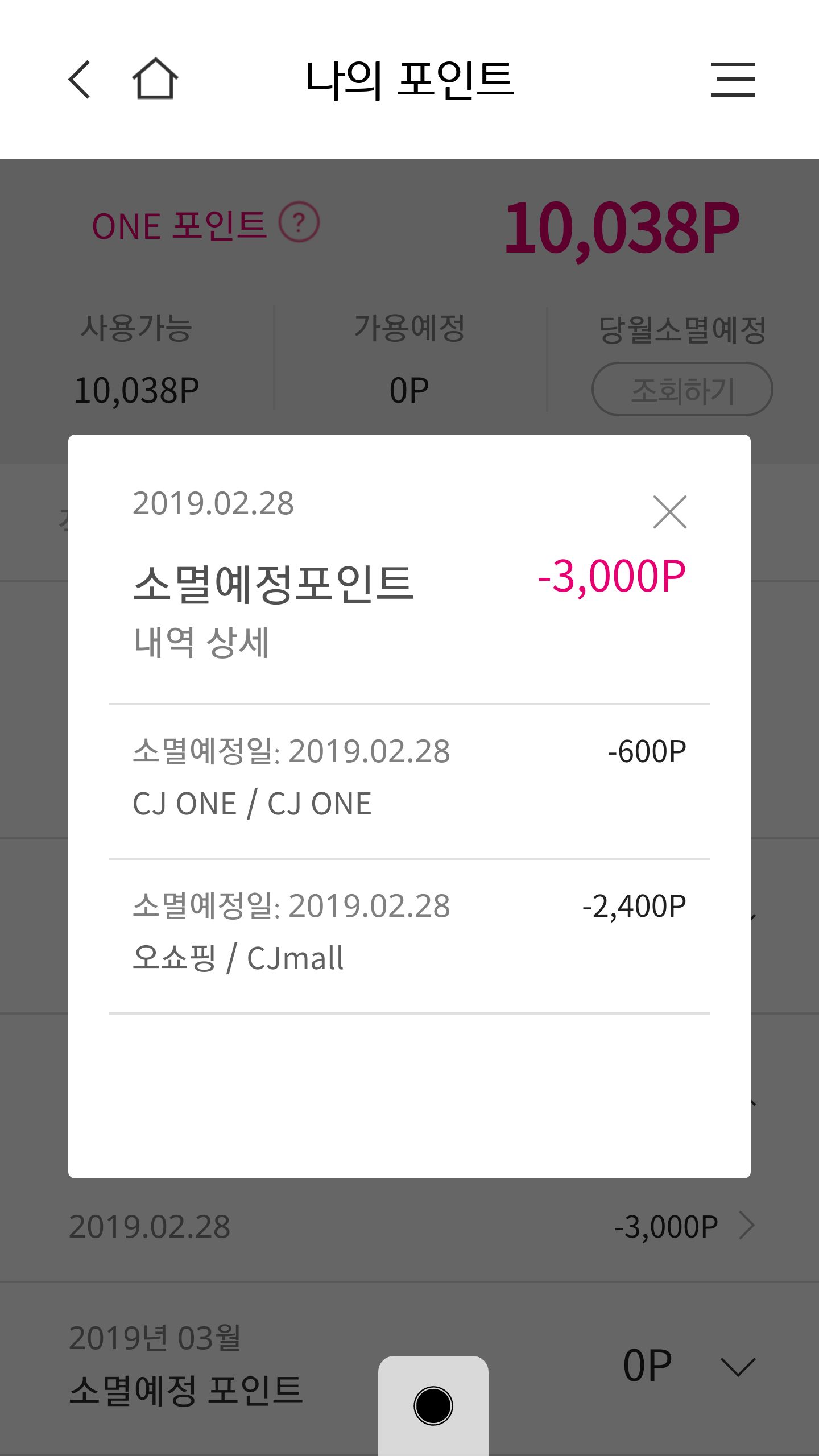cjone포인트는 월말 지나면 소멸됩니다(매월1일자정에 소멸)