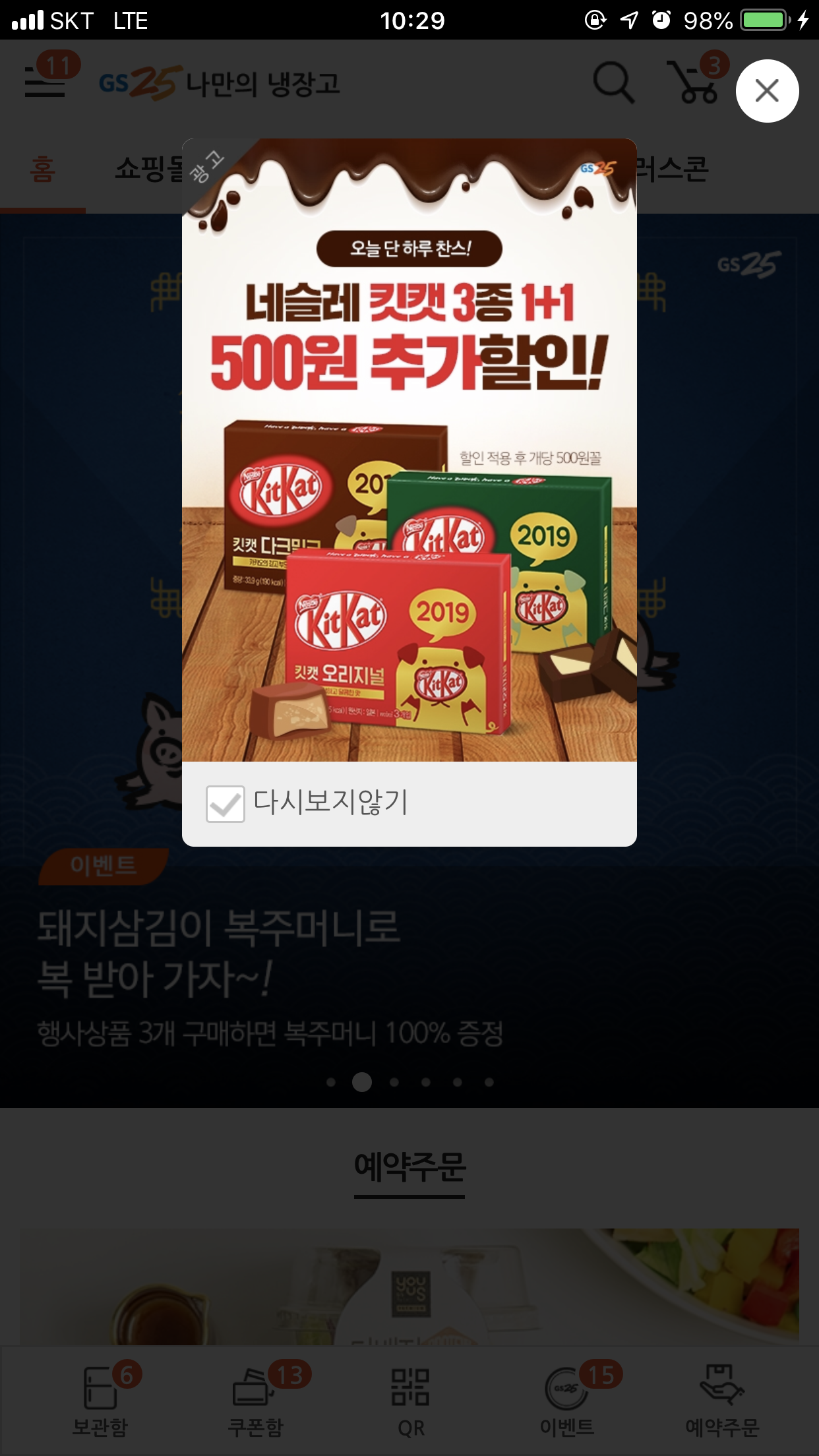나만의냉장고 어플 제일 위에 Gs25나만의냉장고 눌르면 메인으로 가는데 그때