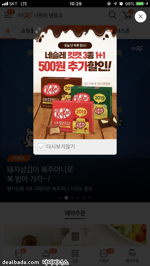 더 살수 있는지 봤는지  500원 할인이 1번만 적용됩니다.