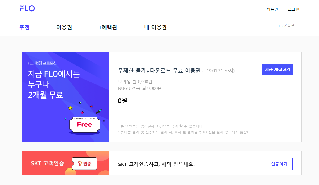 네이버에서 플로 검색해서 2개월 무료 배너로 들어가시면됨.