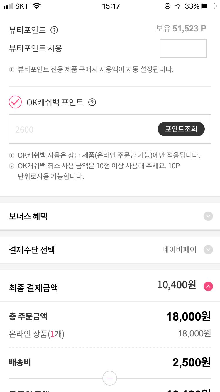 오케이 캐시백 눌러서 두툼 적용하고 남은 금액 뷰티포인트로 결제하려고 하는데 뷰티포인트 금액입력하면 두툼포인트 선택취소되면서 두툼포인트 금액이 확 줄어버리네요ㅠㅠㅠ |